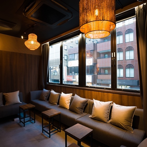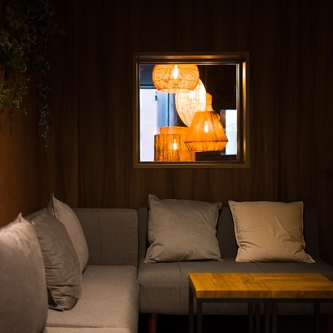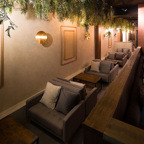 【Wi-Fi・電源完備】カフェ×バー「C.STAND」では、友人とゆったり寛ぎながら会話を楽しむのにぴったりなソファー席を多数完備しております。店内は間接照明が灯る大人の雰囲気…。つい、長居したくなるような居心地の良い空間をお楽しみください。※画像は系列店舗