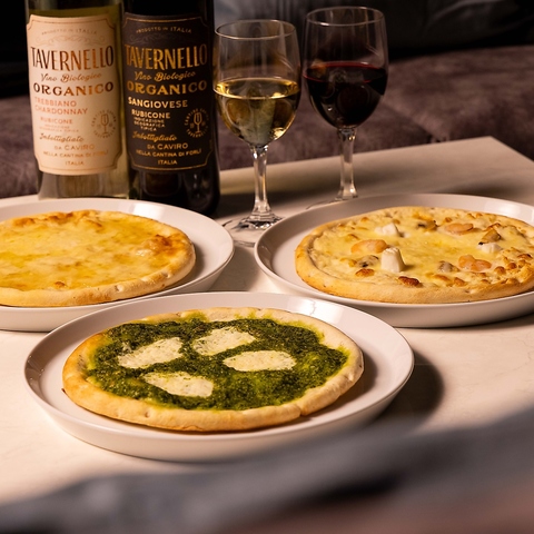 ワインは種類豊富に揃え、ピザは店内で丁寧に仕込み。食事もお酒も楽しめる自慢のカフェ&バーです
