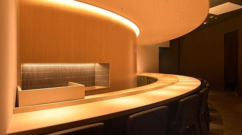 店内に一歩足を踏み入れると、まず目に飛び込んでくるのは美しい円形の曲線カウンターです。すべてのお客様に等しく行き届いたサービスを提供したいという想いから設えたこの特等席では、熟練の職人が目の前でお出しする握りを堪能できます。グレーを基調とした高級感ある空間で、板前との会話も愉しめる至福のひとときをお過ごしください。