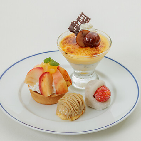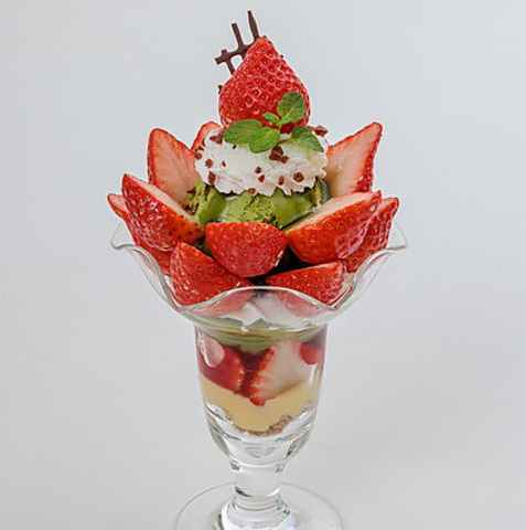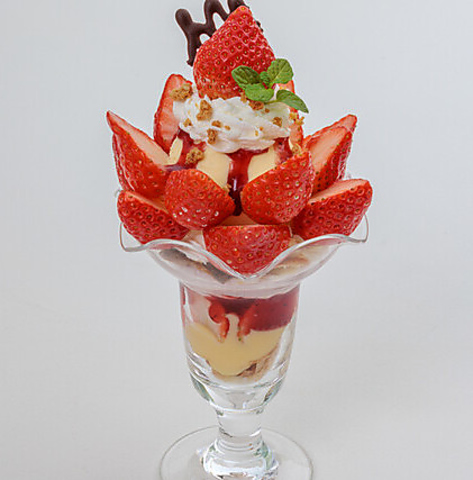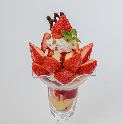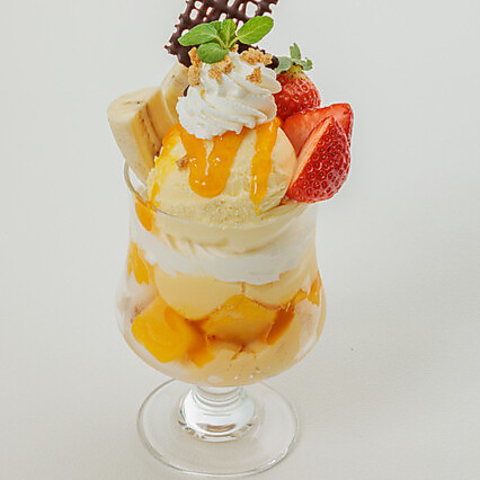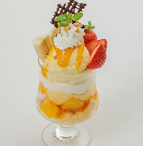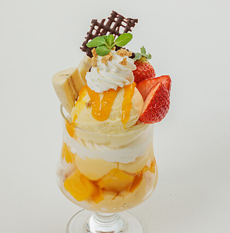 「季節のフルーツパフェ」や「チョコバナナパフェ」に加え、旬の苺を贅沢に使った「苺のミルフィーユパフェ」や「苺と抹茶のパフェ」など、種類豊富なラインナップが自慢です 。それぞれのフルーツに合わせてプリンやパイなどを組み合わせ、多彩な味わいと食感にこだわりました。選べる楽しさ溢れる、当店自慢のパフェをぜひご堪能ください。