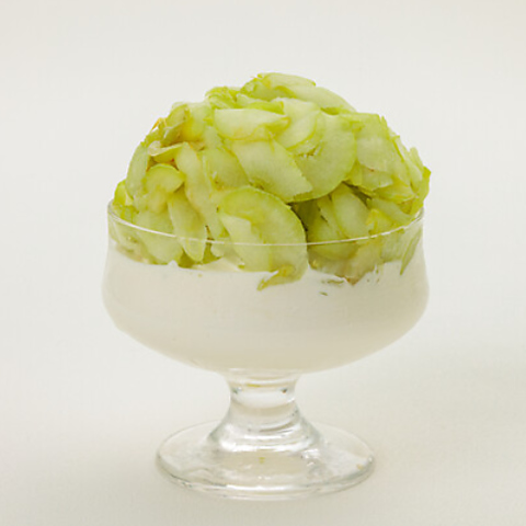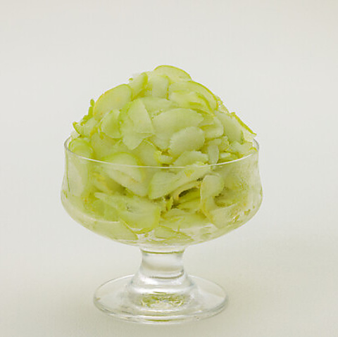 凍ったフルーツを薄くスライスした、果実が楽しめる贅沢なかき氷です。いちごとシャインマスカットをご用意