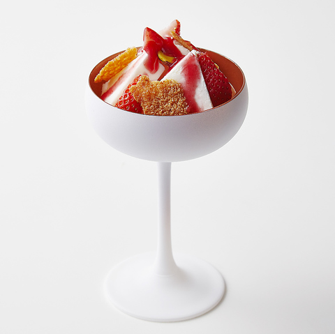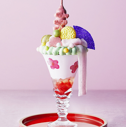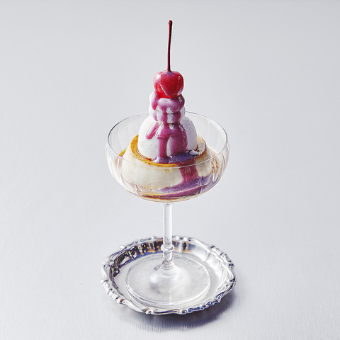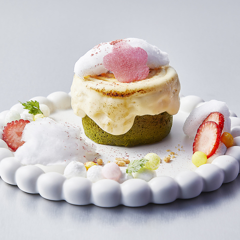 ふるふる震える柔らかいパンケーキの上に、桜ソースと桜の塩漬けパウダーを合わせた甘さ控えめの生クリームと、いちご風味マスカルポーネアイスをたっぷりと。桜の塩漬けが醸し出す甘じょっぱさがなんだかクセになってしまう、無限ループ確定のやみつき系パンケーキ♪