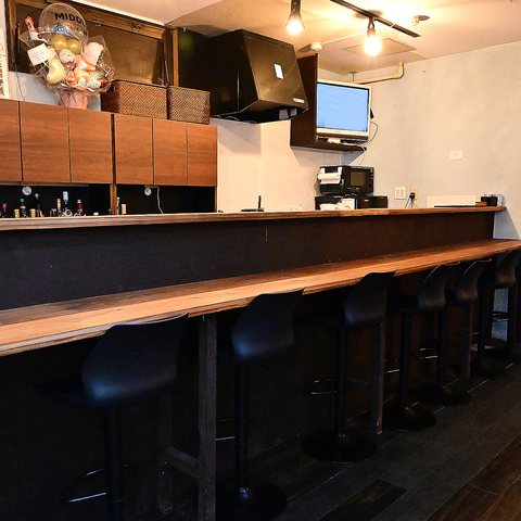 【こだわりのオシャレ空間】オレンジを基調とした照明を導入し、開放的で雰囲気バッチリの贅沢空間を演出。居心地の良いカウンター席は、ダーツを楽しむのも良し。お酒を楽しむのも良し!もちろんデート利用にも◎ソファー席もございますので、ゆっくりおくつろぎいただくこともできます。