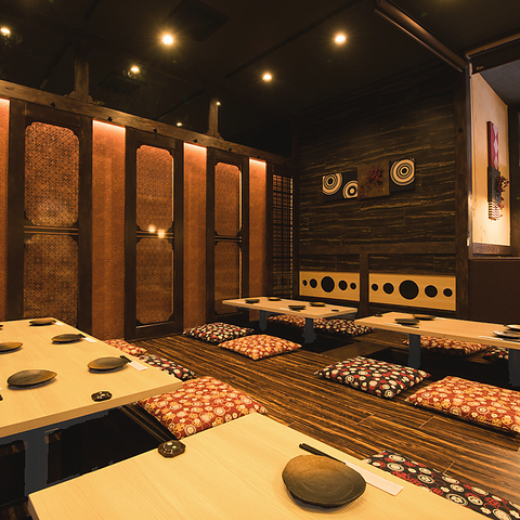 間接照明が照らすプライベート感のある個室席。周りを気にせずまったり楽しめます♪女子会、合コン、デートなどにご利用いただけます◎人気のお席なので早めのご予約がおすすめです!<歓迎会・送別会・宴会・団体様歓迎> ※写真は姉妹店です