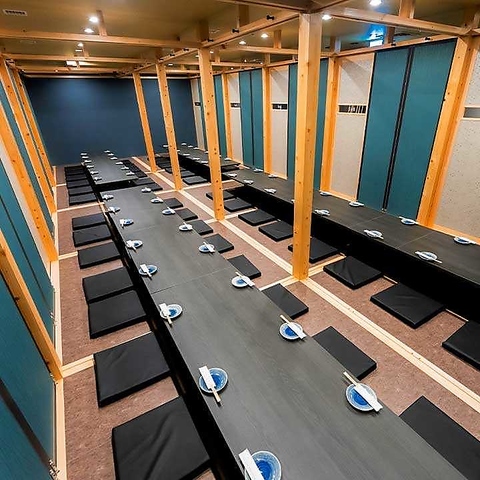 各種宴会に最適のくつろぎ空間の宴会個室。当店は数あるパターンのお席を全席掘りごたつ席でご用意しております。歓迎会、送別会、宴会に最適のくつろぎ空間の宴会個室や少人数のプライベート空間もございます。雰囲気を楽しみながら各種取り揃えた酒と本格料理をお愉しみください。
