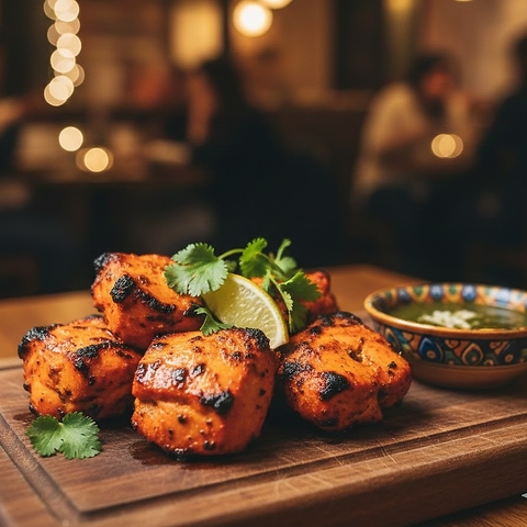 骨なし鶏肉のスパイシーな炭火焼きインド風味料理/8P:750円(税込)