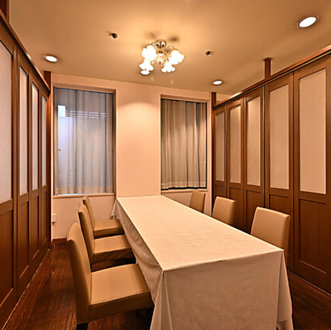 周囲を気にせず会話を楽しめる完全個室をご用意しています。プライバシーが守られた静寂な空間は、重要な接待や商談、あるいはご夫婦での記念日など、水入らずで特別な時間を過ごすのに最適なお席です。