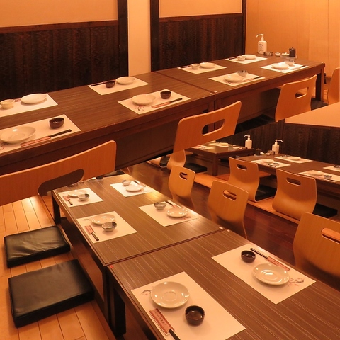 【半個室】掘りごたつ、半個室席です。友人や家族、同僚との特別なひとときを過ごすなら、ぜひご利用ください。自慢の料理と上質なサービスが、皆様のお祝いや記念日を華やかに彩ります。お客様のご要望に合わせたカスタマイズも可能ですので、お気軽にご相談ください。素敵な時間を過ごすために、当店をご利用ください。