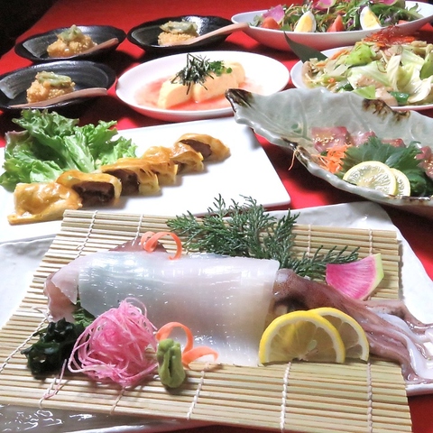 鮮度自慢の「船凍イカ」をお刺身で贅沢に!さらにメインの「白味噌もつ鍋」まで付いた、海鮮も肉も楽しみたい欲張りな方に最適なコースです♪後天ぷらやチキン南蛮など、ボリューム感のあるサイドメニューも充実。大人数での宴会や、大切なお客様をお迎えするシーンでも喜ばれること間違いなしの豪華なラインナップです◎
