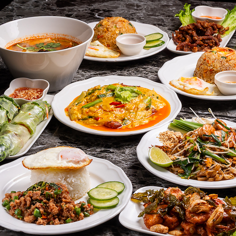 人気のガパオライスやトムヤムクン、店主お勧めのガーリックシュリンプなど本場の味を再現した料理の数々!一人でもみんなでも、宴会や女子会などでタイ料理をご賞味ください♪