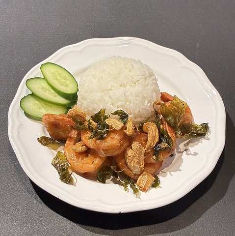 ガーリックシュリンプは、香ばしいコクと、胡椒の刺激が僕の真骨頂。高温でカラッと揚げたプリプリの身に、黄金色の揚げニンニクを山盛りにトッピング!ライスもビールも止まらなくなる、熱帯の刺激を存分に味わってください!