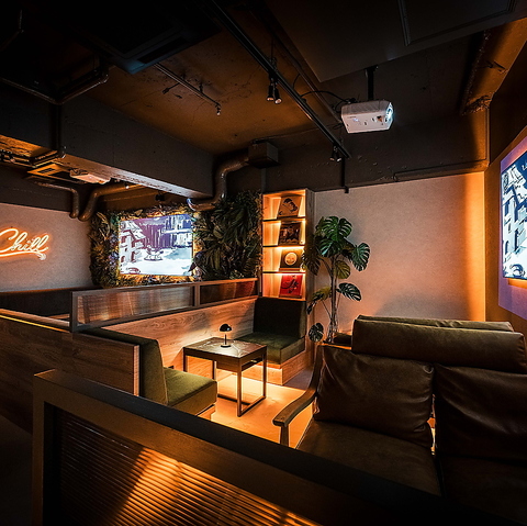 【誕生日・記念日のお祝い/女子会やデートを彩る◆大人の隠れ家】映画のワンシーンに入り込んだような幻想的な店内●柔らかな灯りと映像が演出する非日常のひととき♪デートはもちろん、誕生日や記念日の利用にも人気!おしゃれな雰囲気で思い出に残る夜を梅田で。