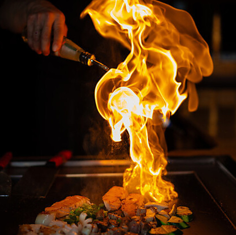 全席に鉄板を備えた店内では、目の前で繰り広げられる調理のパフォーマンスを五感で堪能いただけます!食材が焼ける芳醇な香りやパチパチと響く音、熟練スタッフの鮮やかな手さばきが、お食事の時間をより一層華やかに演出。調理を見ながらお客様の好みも伺う、ライブ感満載のおもてなしを恵比寿の地でお届けします。