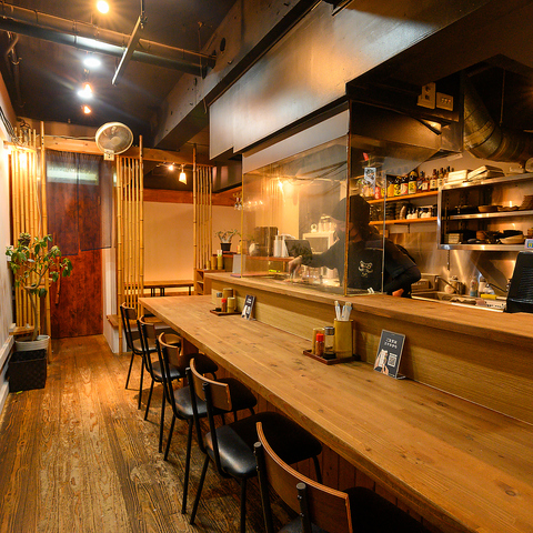 カウンター席では、ライブキッチン方式を採用。調理の様子をお楽しみいただけます。目の前で焼かれる焼き鳥は、迫力満点です。もちろん視覚だけでなく、嗅覚でもお楽しみいただけます。香ばしい匂いで、食欲がそそられること間違いなし!目の前で調理されるできたてのお料理を、心ゆくまでお楽しみください。