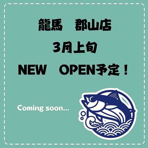 3月上旬オープン予定《藁焼き 龍馬 郡山店》藁焼き鰹のたたきが絶品!藁焼き料理が自慢の居酒屋です♪オープンまでお待ちください♪順次情報もアップしていきます!