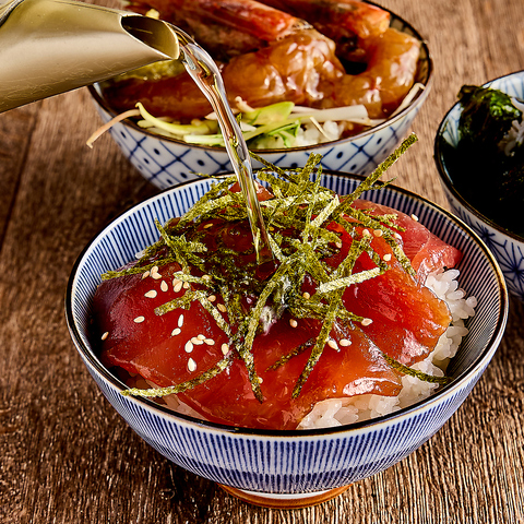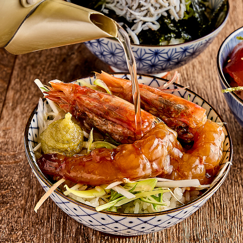 魚ヤロウでは素材選びから徹底。鮮度にこだわった海鮮のみを使用し様々な形でご提供させていただきます!中でも贅沢に味わう海老しゃぶしゃぶは絶対にご注文して欲しい一品!特製出汁にくぐらせると、身はふわっと花開き、ぷりっと弾ける食感へ。贅沢な海鮮をお手軽にご堪能下さいませ!