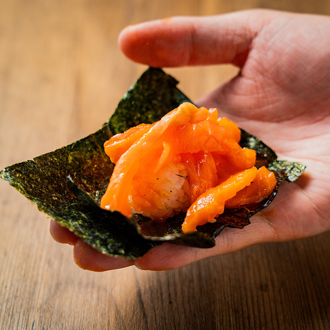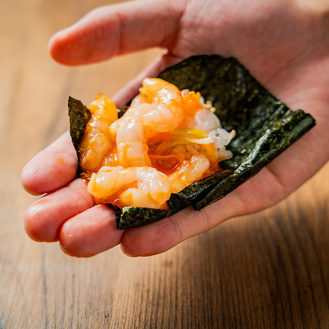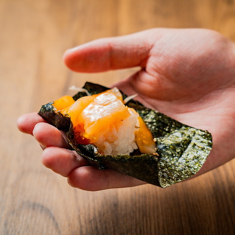 サーモン.蟹.ホタテ.牡蠣などの高鮮度ネタのユッケを寿司で食べ放題としてご提供させていただきます!様々な海鮮を独自の味付けで自分だけの絶品寿司が楽しめる♪こだわりの赤酢.雲丹シャリを組み合わせこれ以上ない極上の味わいがここに♪