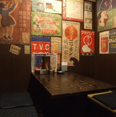 少人数から10名まで使える個室は予約必須。レトロ感ある落ち着いた空間で宴会にも最適!