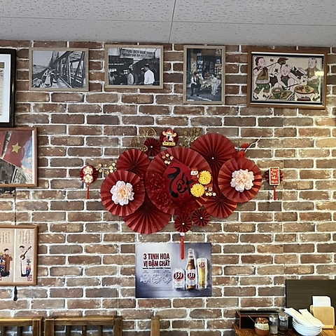 店内には様々な飾りがあり、ベトナムのイメージカラーである赤を基調としております!中でも、ベトナムで旧正月に飾るテトと呼ばれる飾りが大人気!ほかにも、観光地のお写真も飾ってあり、日本にいるにも関わらずベトナムに旅行した気分になれちゃいます♪忙しくて旅行に行けない。そんなあなたもベトナムに来た気持ちになってください♪