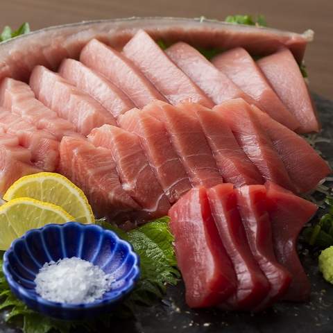 八州名物の鮪は脂のノリが違います!口の中でとろける極上の味をぜひご賞味ください。いろんな部位を刺身でお楽しみいただけるので食感の違いを感じていただけます。鮪のメニューは豊富にご用意しております。