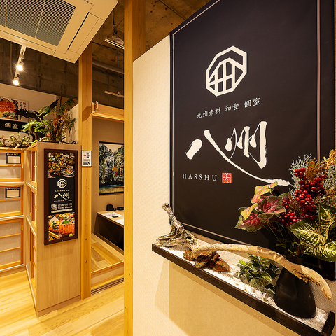 九州の食材を使用した九州をテーマにした創作居酒屋料理を自慢の料理人たちがお届け。見て美味しい、食べて美味しいお料理がたくさん。落ち着いた和の雰囲気が漂う店内は少人数様でもご利用頂ける個室席もございますので、接待や会食などのビジネスシーンやデート、記念日など大切な日のお食事にもご利用頂けます。