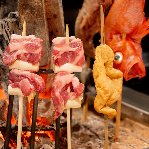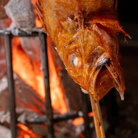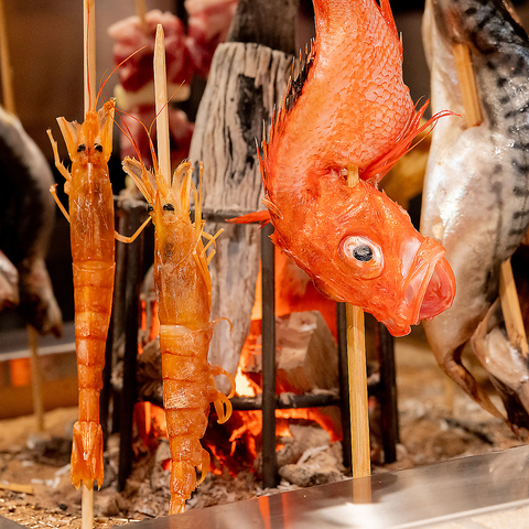 素材の美味しさを存分に引き出す炉端焼き。その炎や香り、熱を感じるの当店の魅力のひとつです。