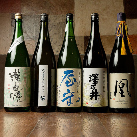 多摩地区の酒蔵から厳選した日本酒を、常時豊富に取り揃えております。定番の純米酒・吟醸酒はもちろん、季節限定酒や希少銘柄まで幅広くご用意。料理との相性やお好みに合わせて、最適な一杯をご提案いたします。日本酒を嗜む大人のための、奥深い一夜をお楽しみください。