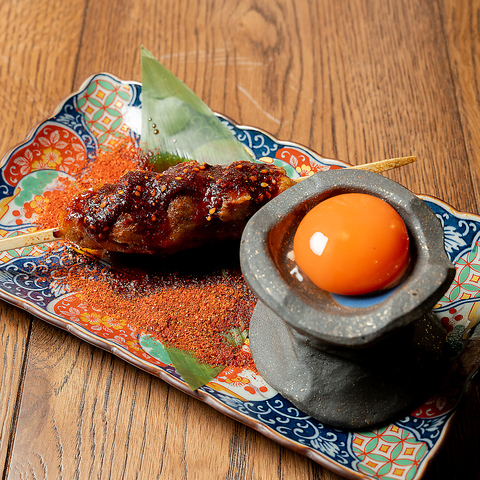 名物のひとつ、お店のモチーフでもある赤鬼をイメージした「鬼の金棒」。ごろごろとした肉感のある大ぶりつくねに、赤鬼を思わせる辛口の特製ダレをたっぷりとかけています。シビレと辛味がクセになる味わいで、食べ応えも満点◎見た目のインパクトもあり、会話が弾むひと品です!