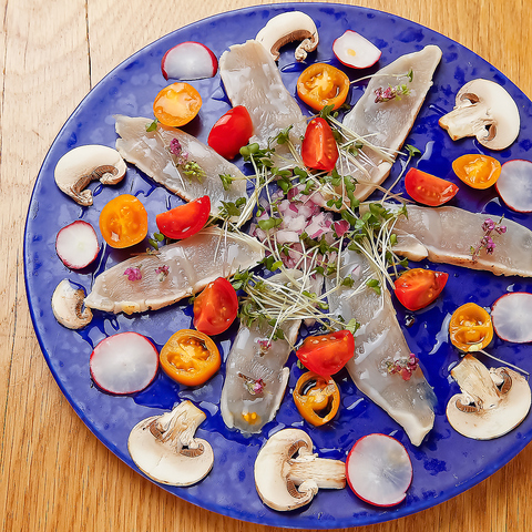三年じっくり熟成させた黒酢を使用し、まろやかな酸味と深いコクを引き出したチキン南蛮。外は香ばしく、中はジューシーに揚げた鶏肉に黒酢の旨みがしっかりと絡む。仕上げに自家製タルタルソースをたっぷりとかけ、卵のコクとほどよい酸味が全体をやさしくまとめる。ご飯にも酒にもよく合う、店の定番となる一品。
