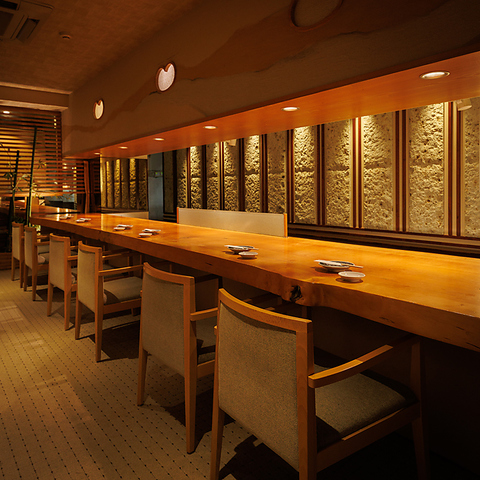 | カウンター | 1名様×0 | 上質な無垢材の一枚板が目を引く、落ち着いた雰囲気のカウンター席!間接照明がほどよく灯る空間は、デートやお1人様にも最適!温もりある木の質感に包まれながら、贅沢なひとときをお過ごしください! |