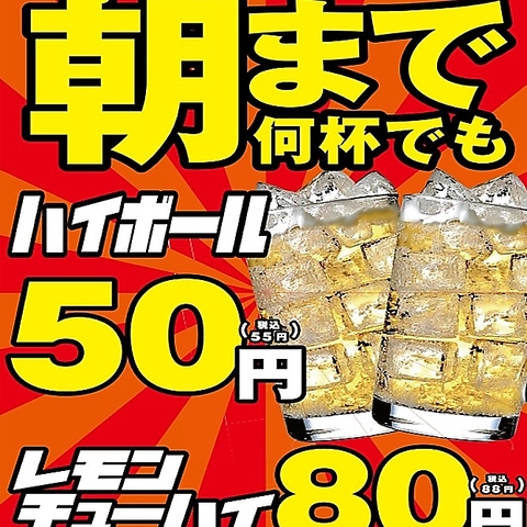 ハイボールが朝まで50円!無限に楽しめる最強コスパで盛り上がりましょう!!