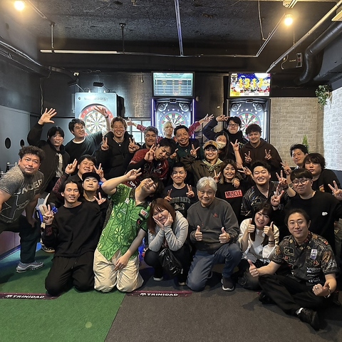 「笑い声が絶えない、大人の遊び場へようこそ」 当店自慢の賑やかな常連様とスタッフの集合写真です!ダーツを通じて年齢も職業も超えた絆が生まれる、そんなアットホームな空間を大切にしています。お一人様でも、仲間同士でも大歓迎。写真のような最高の笑顔になれる時間を、ぜひ当店で過ごしに来てください。