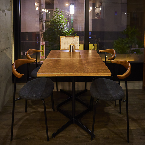 大きなガラス張りの窓と店内を照らす暖かなライトがゆったりとした雰囲気を演出しており、落ち着いた雰囲気の中でお食事をお楽しみいただけます。恋人とのデートや女子会にもピッタリなテーブルのお席と、お一人様やデート利用に最適なカウンターのお席をご用意しております。※写真は系列店です。