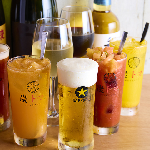 大人気の鶏味噌トマト鍋をメインに炭火焼鳥や充実のおつまみ生ビール付の飲み放題をご一緒にご堪能頂けます!!