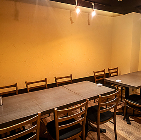 店内を照らす暖かなライトがゆったりとした雰囲気を演出しており、落ち着いた雰囲気の中でお食事をお楽しみいただけます。恋人とのデートや女子会にもピッタリなテーブルのお席と、お一人様やデート利用に最適なカウンターのお席をご用意しております。