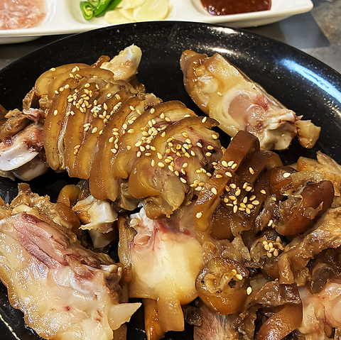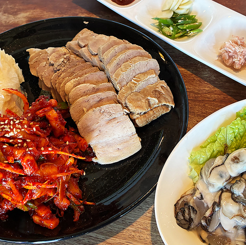 本場韓国スタイルのゆで豚として東京で韓国居酒屋・本格韓国料理を探している方におすすめです。 あっさりしながらも豚肉の旨みをしっかり味わえるし、ガキ(牡蠣)と一緒に食べると、味のバランスも良く、相性も抜群です。