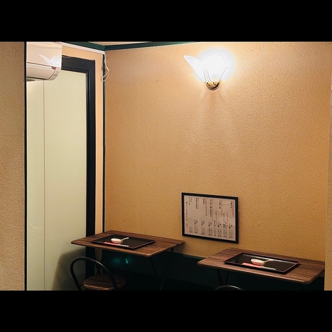 | テーブル | 2名様×1 | カウンター席以外に、お一人様用のお席が2席ございます。「おすすめの一杯」と共にご自身の時間を過ごされたい方に…。 |