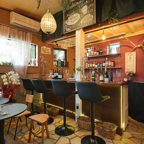 カウンター席とテーブル席を完備し、ゆったりとした大人の時間を楽しめる当店。ペット同伴可能なカフェスペースもご用意しており、愛犬と一緒にリラックスしたひとときをお過ごしいただけます。メニューに載っていないワインもグラスで多数ご提供可能なので、お好きなワインを見つける楽しみも味わえます。