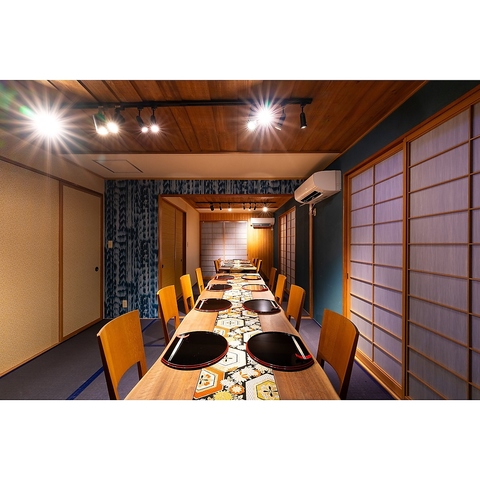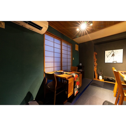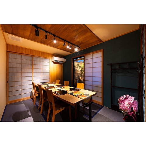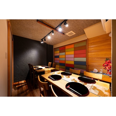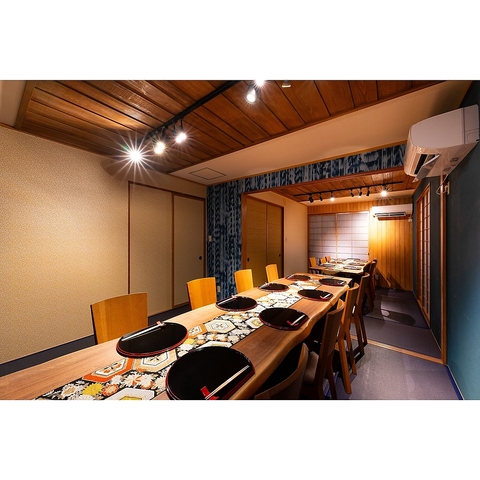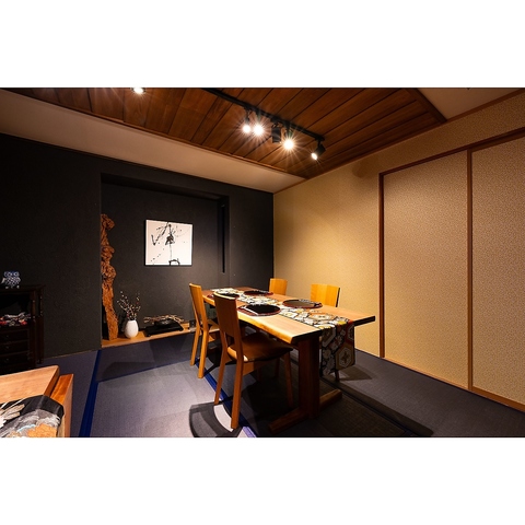 落ち着いた和モダン空間で、大切な方と過ごす特別なひととき。記念日やデートにも最適な、ゆったりとしたお席をご用意しております。