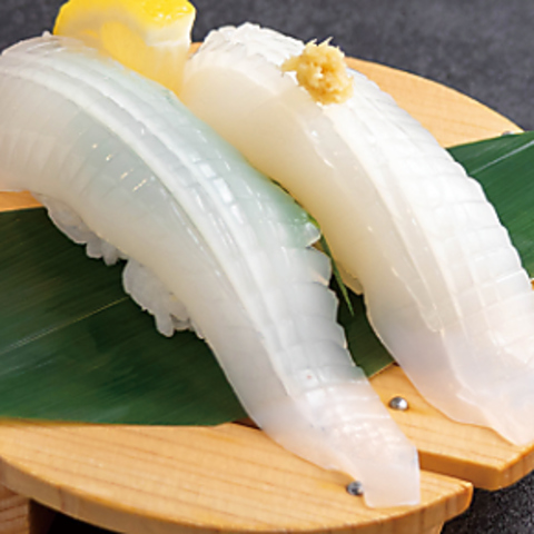 【ねっとり食感にやみつき】槍いか(やりいか)506円(税込)-甘み引き立つ絶品握りをどうぞ-