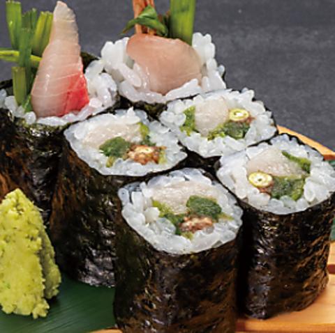 濃厚な旨みを蓄えた活〆鰤を、香り高い旬の芹とともに巻き上げた贅沢な一本。鰤のとろりとした甘みが広がった後、芹の爽快な香りがふわりと抜け、後味まで心地よいバランス。旨み・香り・食感の三拍子がそろったおすすめ巻物です。