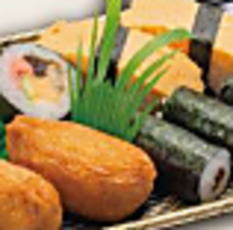 8種/赤身/サーモン/蒸しえび/いなり/納豆巻/ミニいくら丼/玉子焼き/すしあめ