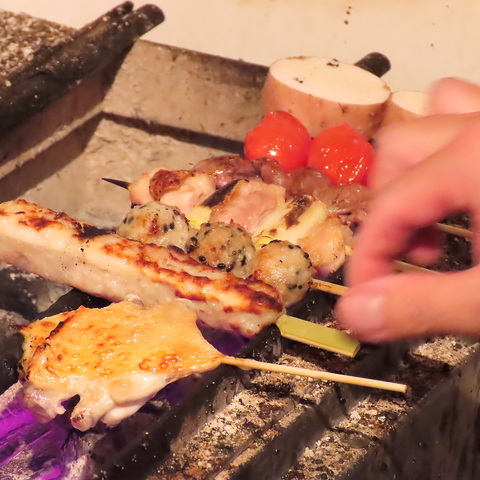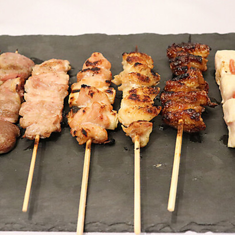 国産の備長炭を使用し、一本ずつ丁寧に焼き上げる焼き鳥は当店の自慢です◎出汁から作る自家製の「出汁塩」が、朝挽きの新鮮な鶏肉本来の旨味を最大限に引き出します。希少な「名古屋コーチンつくね」やブランド豚「イサムポーク」の串焼きなど、こだわりの素材を一本からお楽しみいただけます♪本格的な味わいをぜひご堪能ください◎