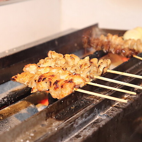 備長炭で焼く焼き鳥は、表面は香ばしく中はジューシー!自家製塩で味わえば奥深い味わいを堪能できます◎