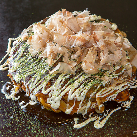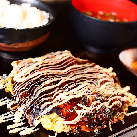 当店自慢のお好み焼きは甘めのソースが決め手です。ミックス焼き2288円(税込)など様々な種類がございます。