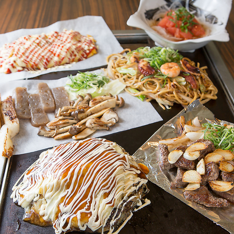 鉄板焼きとお好み焼きが楽しめるさまざまなコースを2750円(税込)からご用意しております。飲み放題付も可能