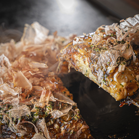 スタッフの技が光るお好み焼きは、1078円(税込)~。外は香ばしくカリッと、中はふんわりとろける絶妙な食感。狸狸亭こだわりのオリジナルソースが旨みを引き立て、一口食べれば思わず夢中になる味わい。おすすめはトマトチーズ玉1320円(税込)。ぜひ一度ご賞味ください。