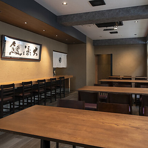 店内は、和の情緒が漂う心地よい空間です。お席の間隔をゆとりをもって配置しているため、車いすをご利用の方やベビーカーをお連れのお客様も、安心してお食事をお楽しみいただけます◎都会の喧騒を忘れる落ち着いた空間で、厳選された国産鰻を心ゆくまで味わう。そんな贅沢なひとときをお過ごしいただけるよう真心を込めてお迎えいたします。