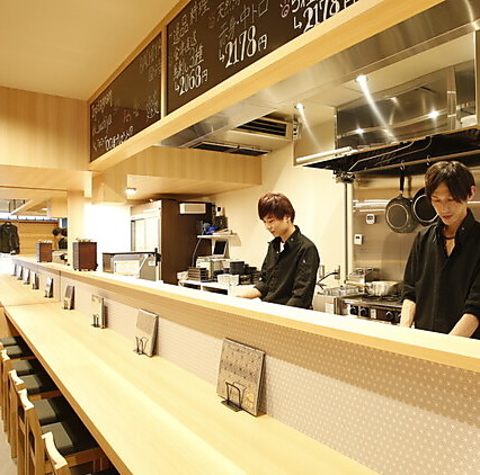 当店はカウンター席メインのお店です。料理を目の前で楽しみながら、アットホームな雰囲気でお食事をお楽しみいただけます。お気軽にご利用ください!