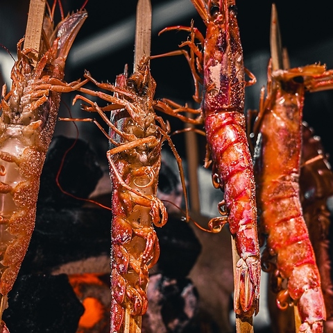 圧倒的な存在感を放つ「特大えび」を、店主が炉端で一気に焼き上げます!パリッと香ばしい殻を剥けば、中からプリプリで甘みの強い身が溢れ出します。素材本来の旨みを引き立てる塩焼きは、まさに至高の逸品。なお、鮮度を重視し厳選して仕入れるため、入荷状況によりご提供できない場合もございます。